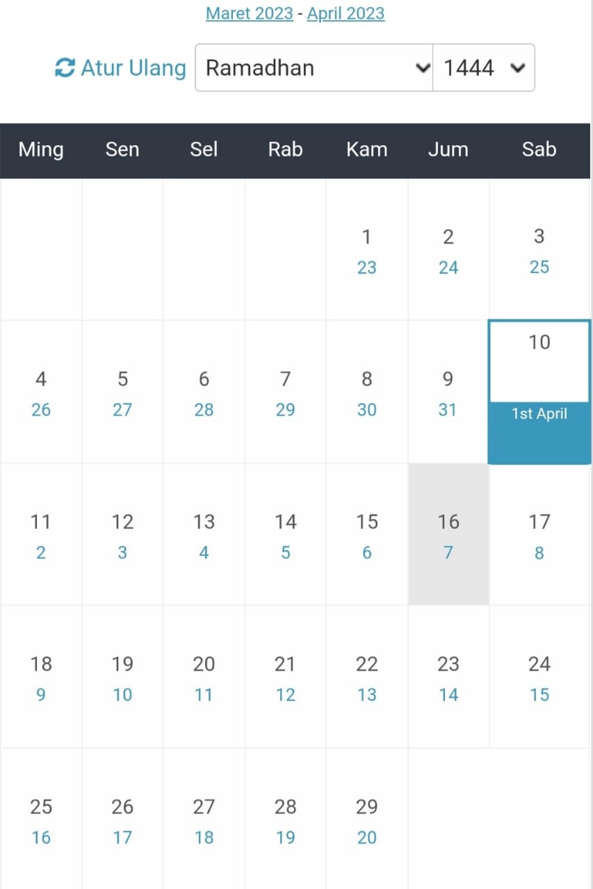 25 Ramadhan 1444 H/Minggu 16 April 2023
