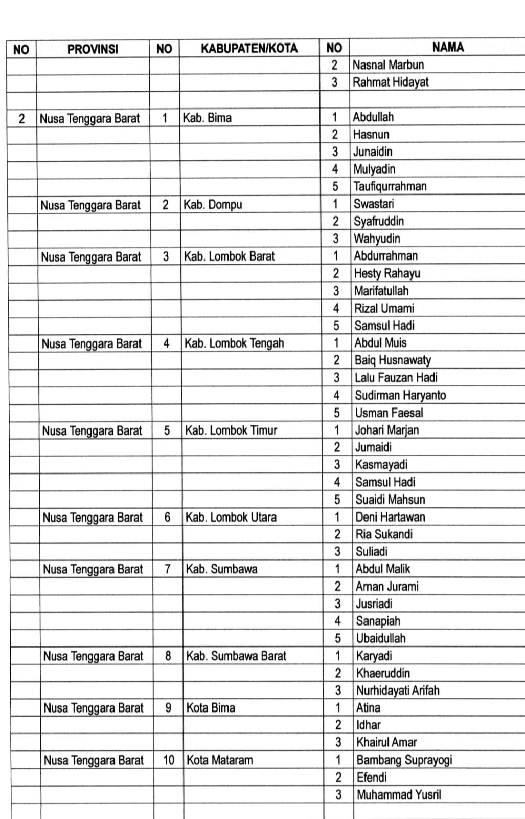 | 3 | Kabupaten Lombok Barat | 1 | Abdurrahman |