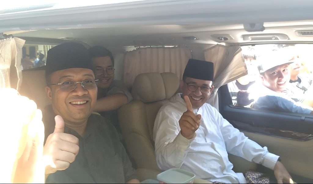 Anies didamping istri dan anaknya. Turut hadir eks Gubernur NTB Zulkieflimansyah alias Bang Zul dan eks Ketua Mahkamah Konstitusi Hamdan Zoelva.