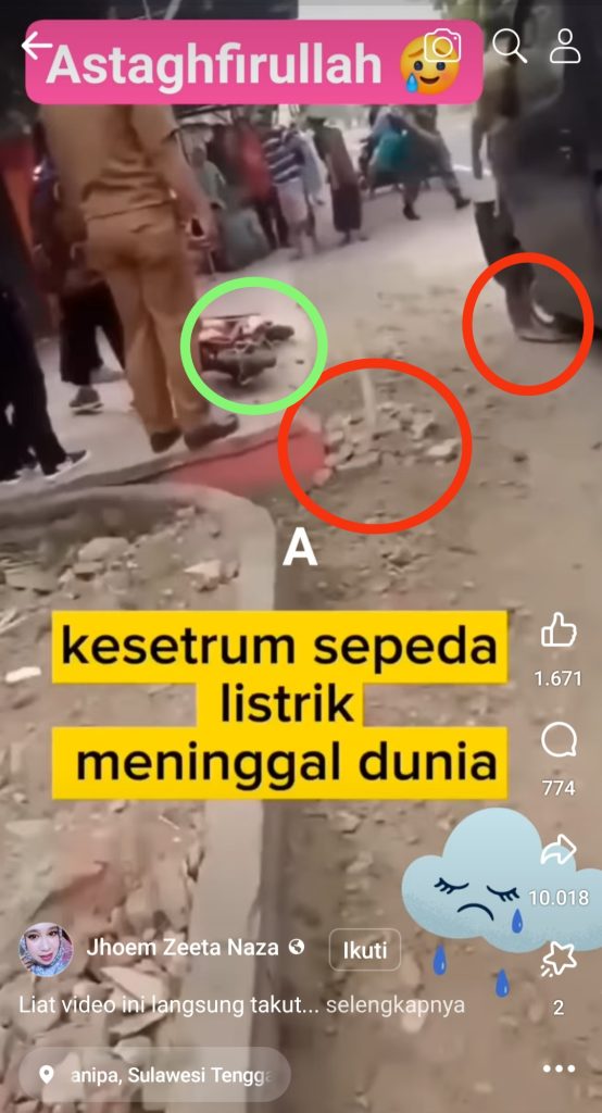 Dalam video tersebut menuliskan narasi bahwa kejadian tersebut merupakan korban tersetrum sepeda listrik.