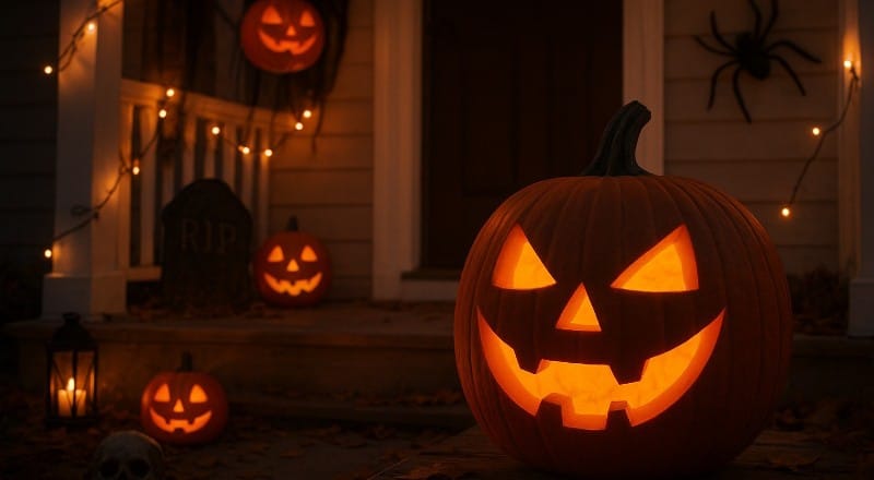 • Labu Halloween (Jack-o’-Lantern): Asal-usulnya berasal dari legenda Irlandia tentang “Stingy Jack”, seorang tokoh yang menipu iblis dan terkutuk berkeliaran dengan lentera dari lobak. Saat dibawa ke Amerika, lobak diganti labu karena lebih mudah diukir.