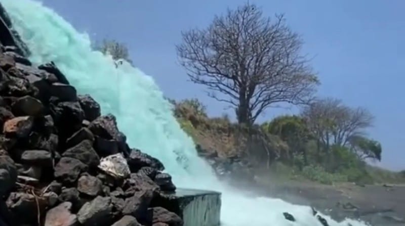 KORANNTB.com – Belum lama ini media sosial dihebohkan dengan air terjun berwarna biru tosca mengalir ke laut di Pantai Ketapang Tampes, Kecamatan Kayangan, Kabupaten Lombok Utara. Air tersebut diduga merupakan limbah dari tambak udang yang mengalir hingga ke laut.