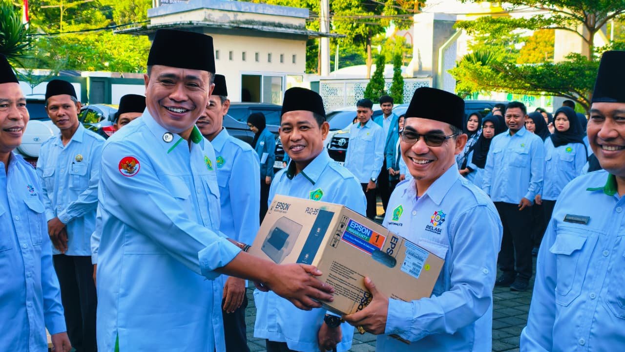 Penyerahan bantuan ini dilakukan secara simbolis oleh Kepala Kanwil Kemenag NTB, H. Zamroni Aziz, S.Ag., M.A., usai memimpin apel pagi di halaman kantor Kanwil Kemenag NTB. Bantuan tersebut langsung diterima oleh Kepala KUA dari masing-masing KUA kecamatan penerima.