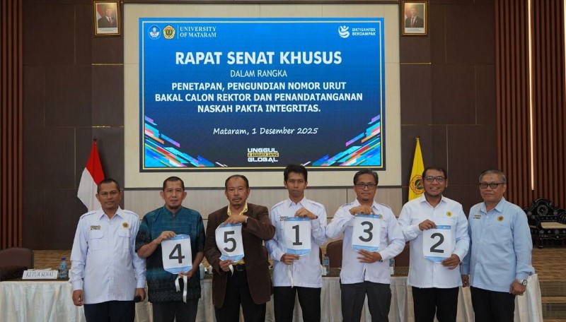 Sebelumnya, Sekretaris Senat Unram sekaligus Pengarah Panitia Pemilihan Rektor, Dr. Muhaimin, S.H., M.Hum., menjelaskan bahwa seluruh tahapan pemilihan rektor telah berjalan lancar sejak masa pendaftaran dibuka pada 14–28 November 2025. Dari enam pendaftar, panitia menetapkan lima bakal calon yang dinyatakan memenuhi seluruh persyaratan.