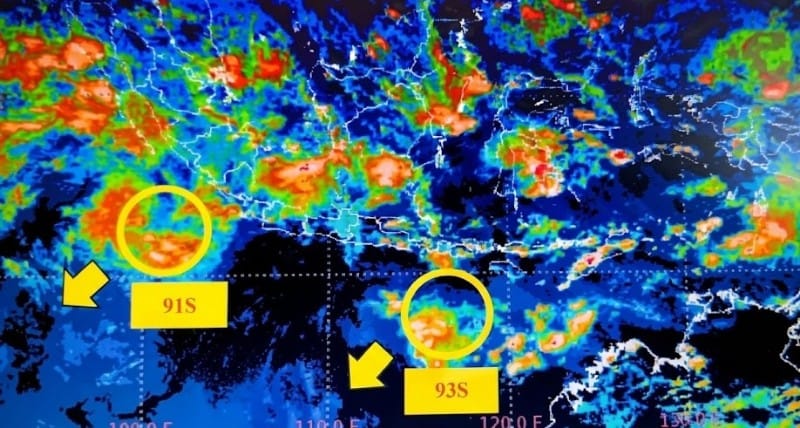 Dalam surat resmi BMKG, dijelaskan “Sehubungan dengan dinamika atmosfer yang saat ini aktif di beberapa wilayah Indonesia, serta keberadaan Bibit Siklon Tropis 91S di Samudra Hindia barat Sumatra dan Bibit Siklon Tropis 93S di Samudra Hindia selatan Nusa Tenggara Barat yang berpotensi meningkatkan curah hujan dengan intensitas sedang hingga lebat di wilayah Sumatra Barat, Bengkulu, Lampung, Banten, Jawa Timur, Bali, Nusa Tenggara Barat, dan Nusa Tenggara Timur, bersama ini kami sampaikan prospek cuaca untuk sepekan ke depan.”