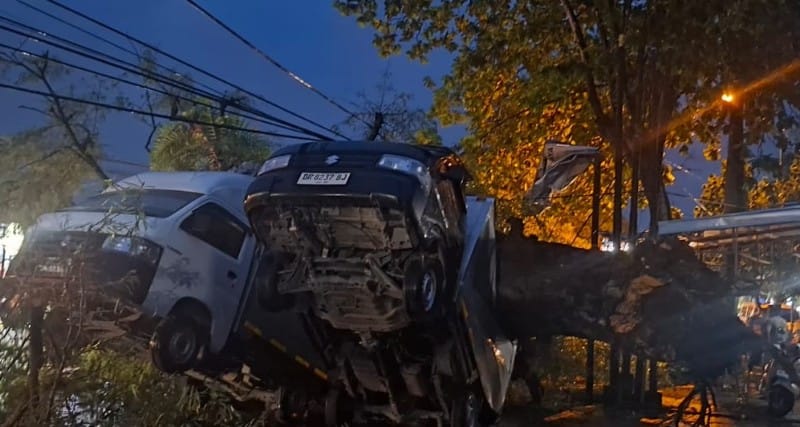 Akibat kejadian tersebut, dua unit mobil mengalami kerusakan berat dengan estimasi kerugian mencapai sekitar Rp40 juta. Selain itu, satu unit sepeda motor dilaporkan rusak ringan. Pohon tumbang juga menimpa kabel listrik milik PLN sehingga sempat mengganggu arus lalu lintas di kawasan tersebut.