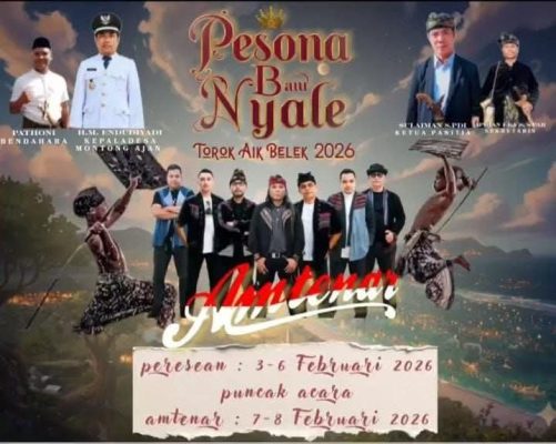 Mengusung tema “Pesona Bau Nyale Torok Aik Belek 2026”, lokasi ini akan menyuguhkan atraksi budaya di tepi salah satu pantai eksotis di Desa Montong Ajan.