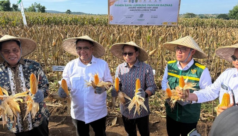 KORANNTB.com – Badan Amil Zakat Nasional (BAZNAS) RI melalui program Program Lumbung Pangan di Kabupaten Lombok Timur, Nusa Tenggara Barat (NTB) sukses panen raya, dengan potensi hasil mencapai 400 ton jagung dari lahan seluas 50 hektare.